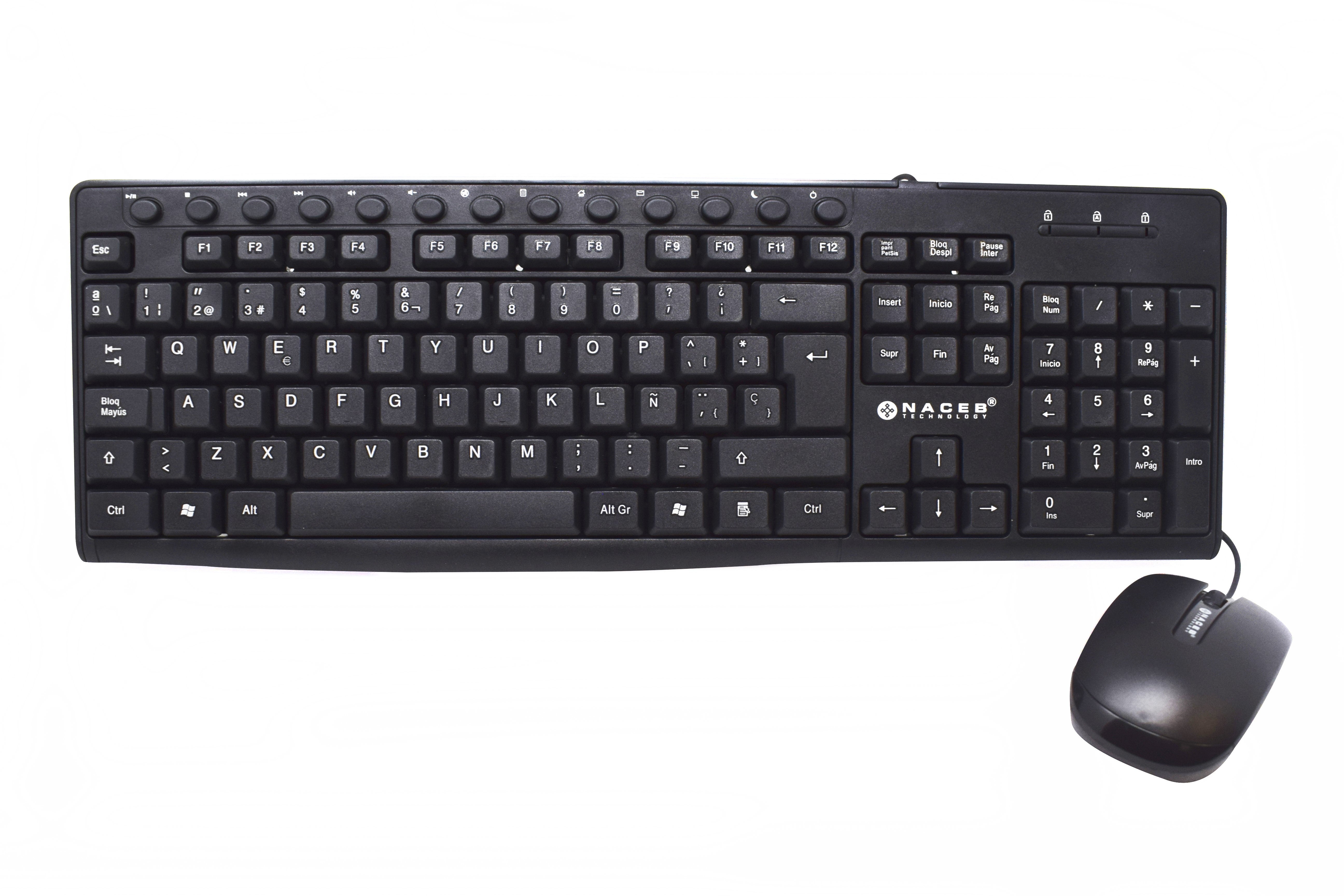 Kit de Teclado y Mouse Naceb NA-112N, Alámbrico, USB, Negro (Español)