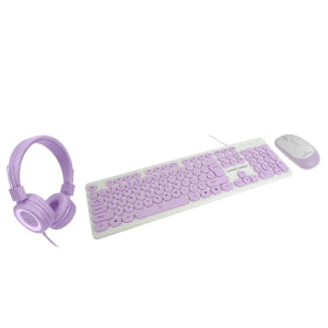 Kit de Teclado y Mouse Perfect Choice Farben 3 en 1, Alámbrico, USB, Morado (Español)