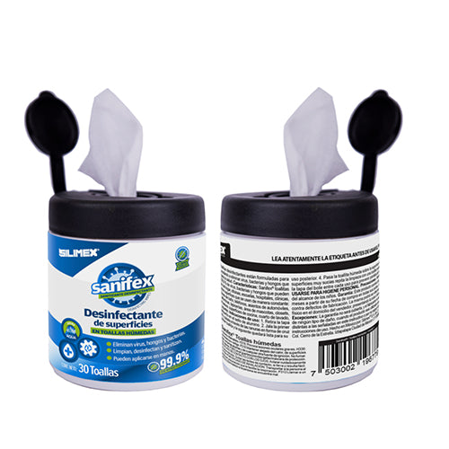 Silimex Toallas Húmedas Desinfectantes Sanifex, 30 Piezas